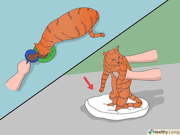 При необхідності дайте кішці те, що вона просить. кішки засмучуються, якщо не отримують бажане. Іноді їх бажання дуже прості і нешкідливі, наприклад, посидіти ось саме на цій м'якій подушці. У деяких же випадках бажання кішки може нашкодити їй, наприклад, коли вона випрошує шматочок вашої їжі. Багато що з того, що їмо ми, дуже шкідливо для здоров'я кішки. Якщо те, що просить кішка, їй не зашкодить, можна поступитися і дати їй це. Якщо ж це щось шкідливе, Запропонуйте кішці щось інше.- Якщо кішка хоче сидіти на м'якій диванній подушці, дозвольте їй це зробити. Ви навіть можете взяти кішку і посадити її на це місце. Схвально погладьте кішку пару раз.