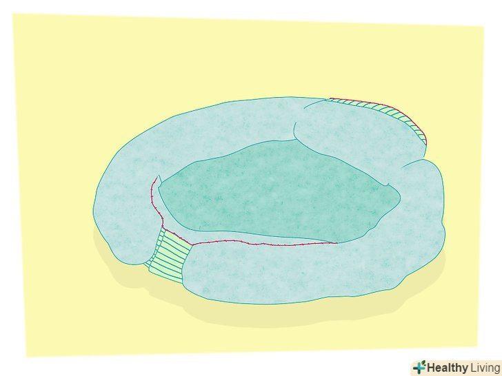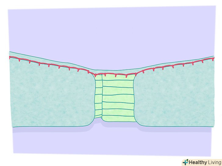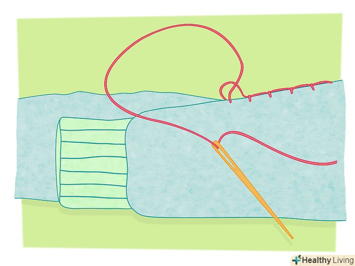 Сметочнимі стібками прошийте ділянку від однієї пахви до іншої. для отримання округлої підстилки шов слід прокласти по дузі. Обов'язково прошийте обидва шари в'язки. Тепер у вас підучився тунель, який можна набити ватином або старими ганчірками (або нарізаними зі старих светрів смужками). Набивайте тунель, поки не додасте рукавам сосискообразную форму. При бажанні також можна набити і дно підстилки.