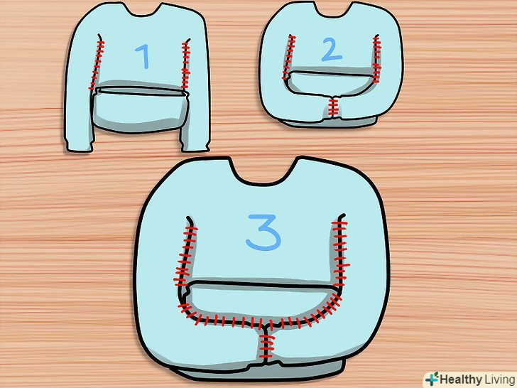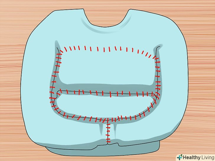 Прокладіть ланцюжок сметочних стібків від однієї пахви светра до іншої. стібки можуть бути як невидимими, так і контрастними, що залежить від обраного Вами стилю оформлення підстилки. Рядок стібків повинна вийти трохи вигнутою назовні у формі півмісяця.- Стібки обов'язково повинні захопити обидва шари в'язаного полотна.