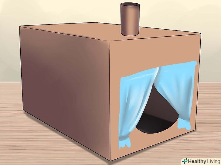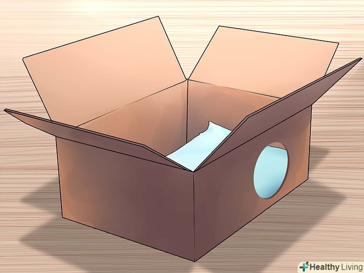 Підберіть пакувальну картонну коробку, відповідного для кішки розміру і форми. кішки більш чутливі до холоду, ніж люди, тому картонний будиночок допоможе кішці залишатися в теплі, забезпечивши їй ізоляцію від холоду, і подарує безпечний простір, в якому вона зможе ховатися і відпочивати. В даний час картонні коробки можна придбати в різних кольорах, з різноманітними принтами, в вінтажному або сучасному стилі. Все це дозволяє зробити свій індивідуальний вибір, найкращим чином підходить до декору вашого будинку. В якості альтернативи завжди можна скористатися звичайною пакувальною коробкою від якого-небудь товару.- Виготовлення картонного будиночка стане відмінним проектом для спільного виконання з дітьми, коли через дощ у них немає можливості погуляти, а саму вашу кішку тягне в сон.