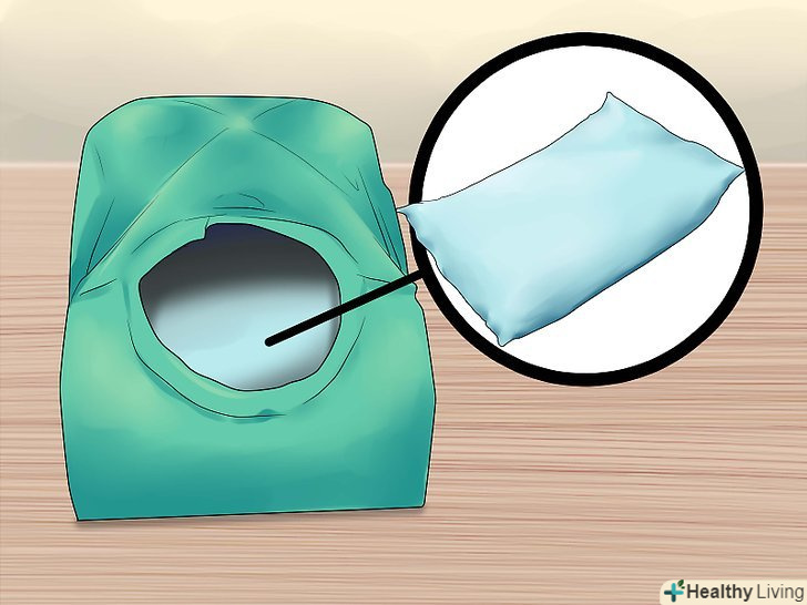 Встановіть тент на комфортне для кішки підставу. Тент можна поставити на вже наявну у вас подушку або іншу м'яку поверхню. Мета полягає в тому, щоб забезпечити кішці комфорт і безпеку, тому використовуйте все те, що задовольняє цим критеріям! Можна взяти для цього матеріали з улюбленою для кішки текстурою-подушку, рушник, фетр, старі штори або покривала.- Доповніть тент річчю з вашим запахом, наприклад, старою футболкою або светром.