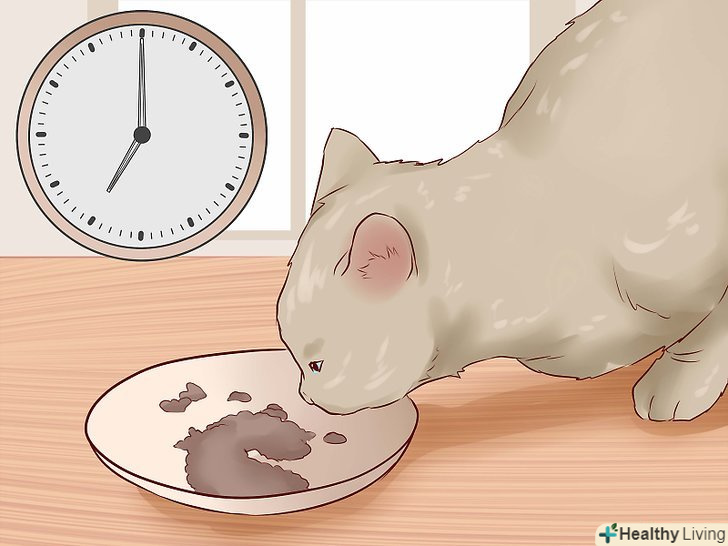 Годуйте кішку за розкладом. можливо, ви не думали про це, але годування — це ще одна можливість зблизитися з кішкою. Кішка повинна розуміти, що їжу даєте їй саме ви. Найкраще годувати кішку в один і той же час кожен день, а не залишати корм в мисці. [18]- Основним поживним речовиною в раціоні кішки повинен бути білок (наприклад, індичка або курка). [19]
