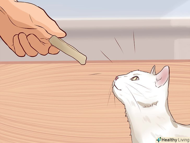 Запропонуйте кішці багато різних іграшок. іграшки дозволяють кішці більше рухатися і більше думати. Якщо ви зробите простір цікавіше для кішки, ви швидше сподобаєтеся їй. Різним кішкам подобаються різні іграшки. Наприклад, якщо кішці подобається бігати за чим-небудь або ловити предмети, їй сподобаються звисають іграшки. [8]- Якщо ваша кішка літня або більш спокійна, можливо, їй подобаються іграшки, за якими не потрібно бігати — наприклад, подушечка з котячою м'ятою, з якою можна грати, лежачи на боці. [9]