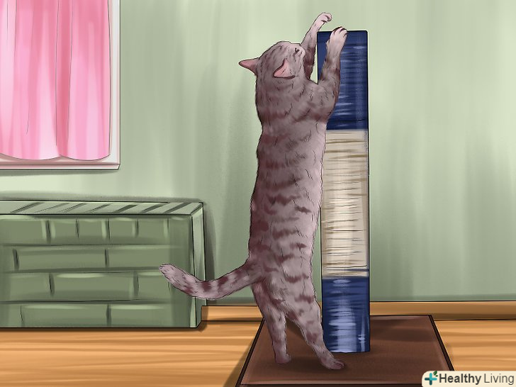 Зрозумійте, чому кішка дряпає предмети в будинку. насправді кішки знаходять це забавним або роблять це з метою поточити кігті. [7] Так як це дуже важливий процес для кішок, змушувати їх припинити робити це не можна. Найкращий спосіб зупинити кішку від дряпання вашого улюбленого крісла або дивана-переключити її увагу.- Дозвольте кішці дряпати стовп-когтеточку, а щоб вона його використовувала, надушіть предмет котячої м'ятою або обв'яжіть іграшками. Якщо кішці не подобається когтеточка, можливо, у неї невідповідна структура. Прикріпіть кілька різних шматочків тканини і подивіться, чи сподобається це вихованцеві.