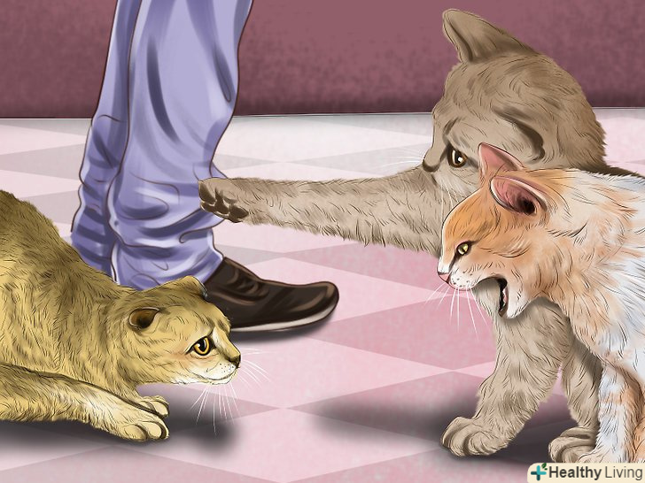 Дізнайтеся, як кішки можуть реагувати на нового кота в сім'ї. на знайомство кошеня або дорослого кота з вашими нинішніми вихованцями може піти деякий час. Швидше за все, старожил буде розглядати новенького як загрозу і буде багато шипіти, гарчати і намагатися «вигнати» непроханого гостя. Це нормально поведінка, і після обережного знайомства і повторних нападок кішки повинні прийняти один одного і, можливо, стануть хорошими друзями. [4]