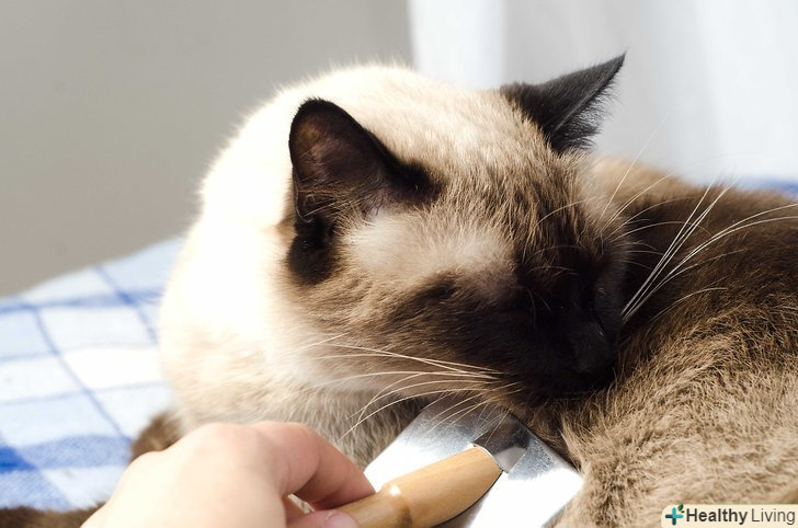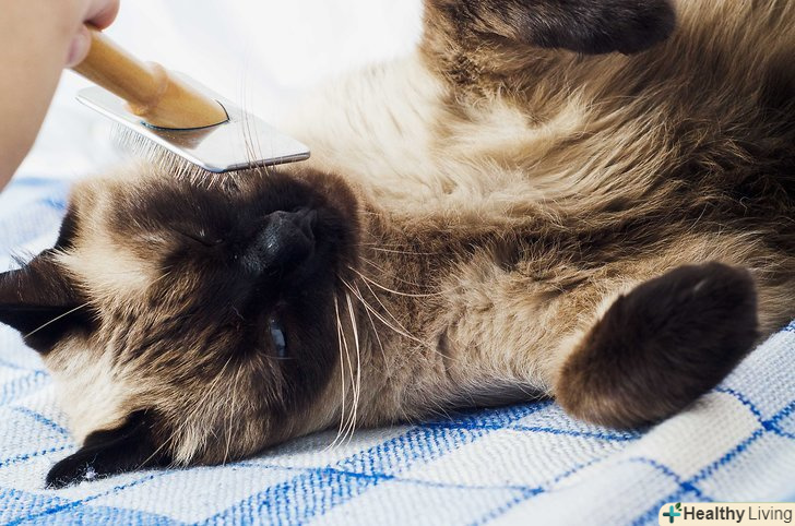 - Регулярно розчісуйте кішку, особливо, якщо у неї довга шерсть. [Image:Prevent Matted Cat Hair Step 2.jpg|center|550px]]