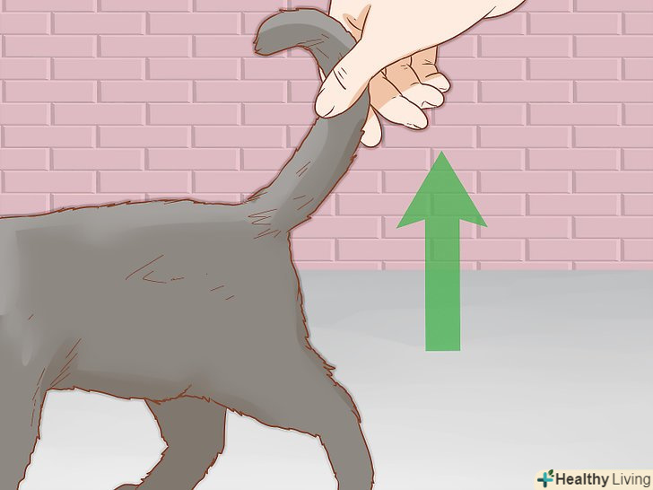 - Якщо кішка не дозволяє підняти хвіст, почухайте її в місці, де хвіст виходить зі спини. Як правило, кішки піднімають хвіст, коли хтось торкається до цього місця. [1]