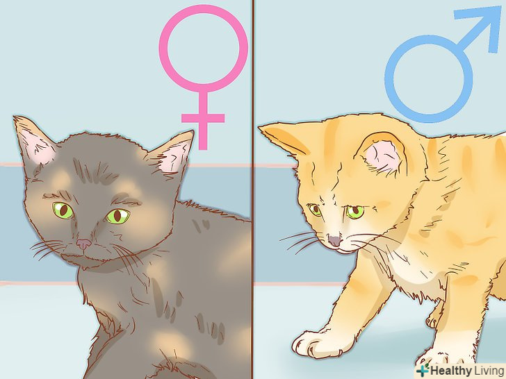 Перевірте колір кота. якщо у вас невеликий послід кошенят, подивіться на їх кольору, деякі забарвлення кішок є гендерно-специфічними.- Кішки черепахового забарвлення або кольору Каліко, як правило, бувають самками.
