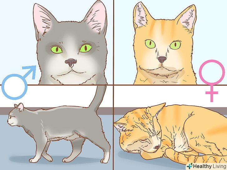 Спостерігайте за специфічною поведінкою властивим тільки котам або кішкам. виняток становлять Кастровані і стерилізовані коти і кішки. Визначити стать по поведінці легше, якщо кішка знаходиться в своєму природному стані.- Кастровані коти, як правило більш агресивні ніж самки, їх голови набагато більше, а шкіра товщі. Вони мітять територію сильно пахне сечею. [5]