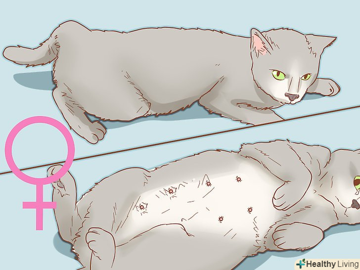 Слідкуйте за ознаками періоду тічки, вагітності або недавньої вагітності. у не стерилізованих кішок не буде періоду тічки, стану фертильності, яке дозволить їм завагітніти, кожні 3-5 тижнів в теплу погоду (або в будинку з контрольованим кліматом). Поведінка, характерна для кішок в період тічки:- Сильно нявкає, щоб залучити самців. Створюється враження, що у кішки щось болить або що вона ниє.