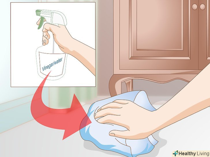 - Можна приготувати власне засіб для чищення: змішайте білий оцет і воду в пропорції 1:1. Змочіть розчином чисту ганчірку і протріть тверді поверхні.