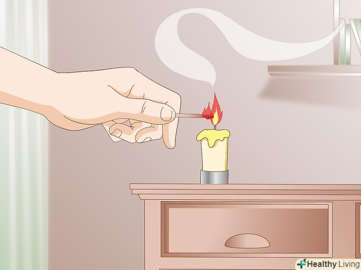 Використовуйте ароматичні свічки. свічки не усувають запах, а всього лише приховують його. Наприклад, їх можна використовувати, щоб зробити запах менш помітним, коли ви усуваєте пляму, або якщо до вас раптово прийшли гості і необхідно швидко освіжити повітря в будинку. У всіх подібних ситуаціях можуть стати в нагоді ароматичні свічки. [8]- Понюхайте свічки, перш ніж купувати їх. Ви повинні відчути сильний аромат-в цьому випадку свічки дадуть досить насичений запах при горінні.Gorenje.
