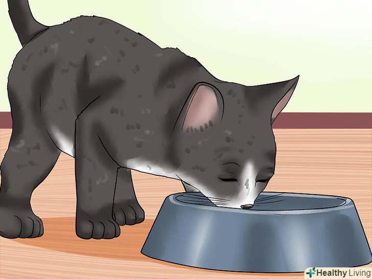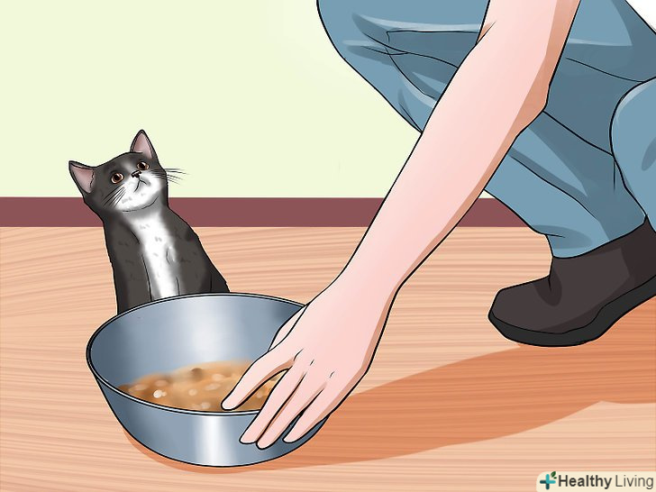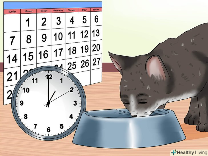 Не прибирайте їжу. кошенята люблять їсти невеликими порціями протягом усього дня. Звичайно, можна змусити кошеня харчуватися за розкладом, але в цьому немає необхідності, поки він не стане дорослим. Залишайте кошеняті сухий корм і консерви, щоб він сам міг вибрати, коли і що їсти. Не забувайте щодня міняти вчорашній корм на свіжий. [10]- Також не забувайте залишати кошеня воду.