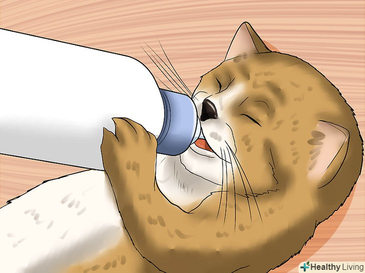 Якщо потрібно, годуйте кошеня з пляшечки. якщо ветеринар встановив, що кошеня ще дуже маленький, то його потрібно буде годувати з пляшечки, поки він не зможе їсти тверду їжу. Вказівки по годівлі, приналежності і замінник молока можна придбай у ветеринарній клініці або зоомагазині. Не забувайте про наступні загальні вказівки:- Кошенят віком до місяця потрібно годувати через кожні три години (навіть вночі). Годуйте кошеня замінником молока з пляшечки з соскою. [13]