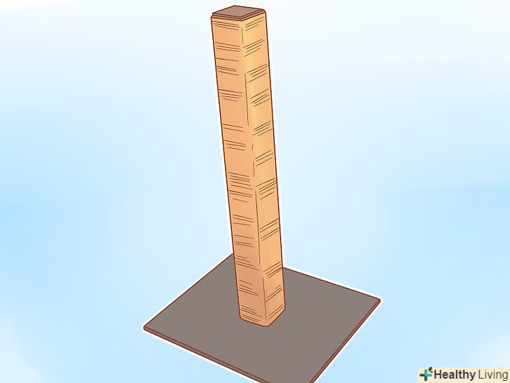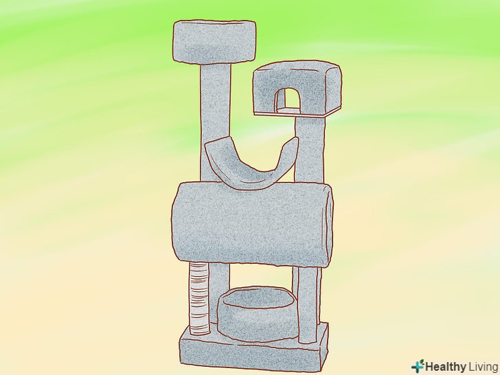 Купіть або сконструюйте для своєї кішки котяче «дерево», щоб вона могла на ньому грати. [2] Дерево може складатися з декількох відділень або поверхів, з місцями, які можна дряпати, де можна підвісити іграшки, з тунелями або коробками, щоб на них підійматися, і так далі. Його можна знайти в зоомагазинах.