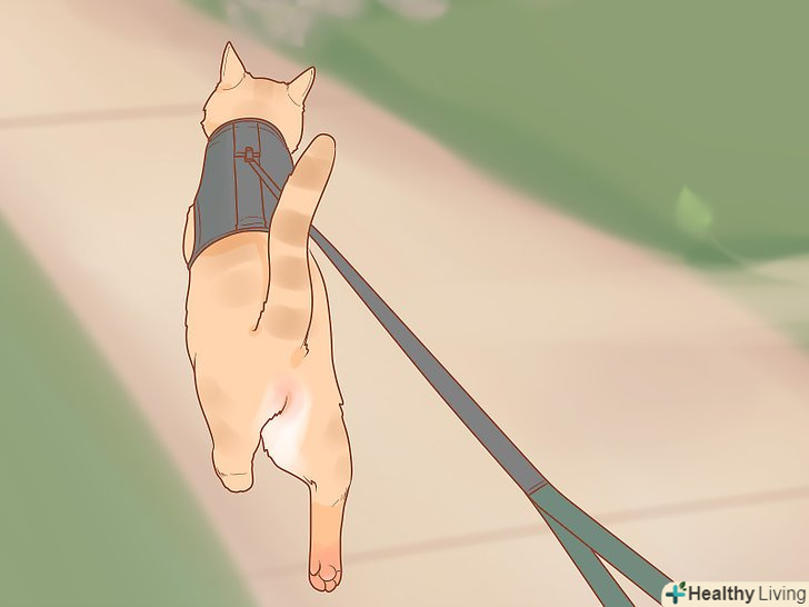 Вигулюйте кішку на повідку. [7] котячі повідці продаються в зоомагазинах. У них є невелика шлейка, і з їх допомогою ви зможете гуляти з кішкою так само, як ви гуляли б з собакою. Не кожна кішка може відразу пристосуватися до повідця, тому буде потрібно деякий час, перш ніж ви навчите її цьому. Найкраще почати, коли вона ще кошеня, щоб тварина з раннього віку звикало до повідця.