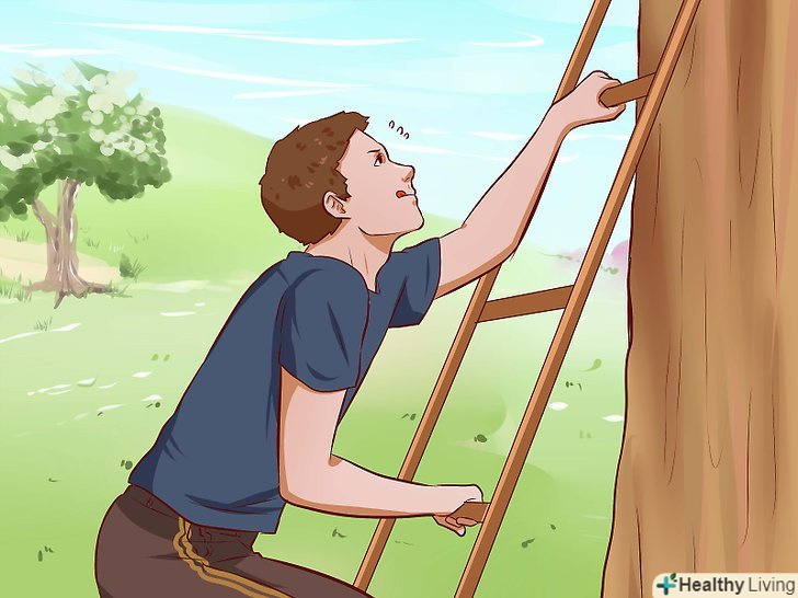 Якщо інші методи не привели до успіху, залізьте на дерево самі. використовуйте стійку сходи, якщо тільки ви не володієте багатим досвідом лазіння по деревах. Перш ніж забиратися на дерево, знайдіть принаймні одного помічника. Він повідомить вас про переміщення кота і викличе допомогу, якщо ви впадете.- Вирішивши лізти на дерево за кішкою, обов'язково підберіть надійне оснащення, щоб не поранитися, і заручіться чиєюсь допомогою на випадок непередбачених ситуацій.