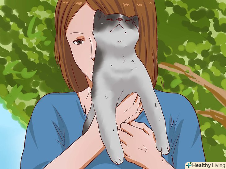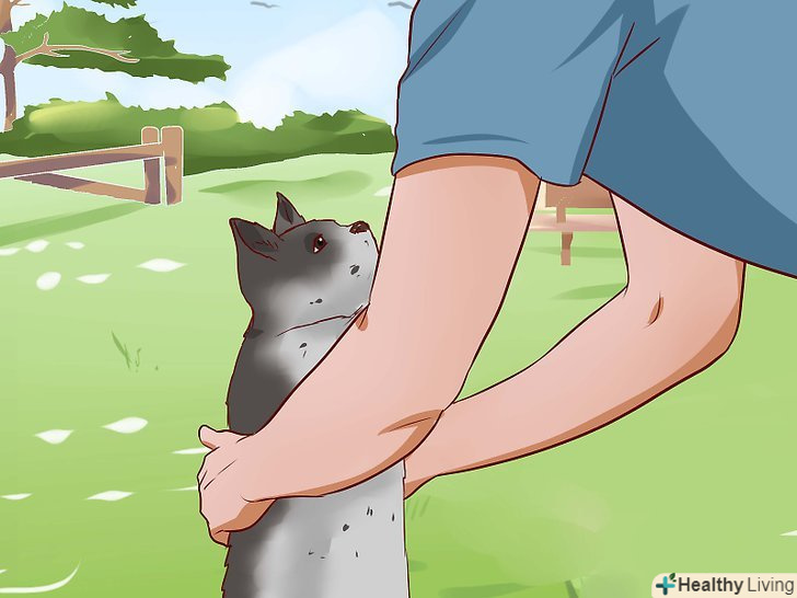 Поводьтеся з кішкою обережно, але впевнено. Не дозволяйте їй вислизнути від вас перш, ніж надійно схопите її або помістіть її в коробку або сумку.- Залишайтеся спокійним – якщо ви почнете панікувати, кішці передасться ваше хвилювання, і вона спробує вирватися.
