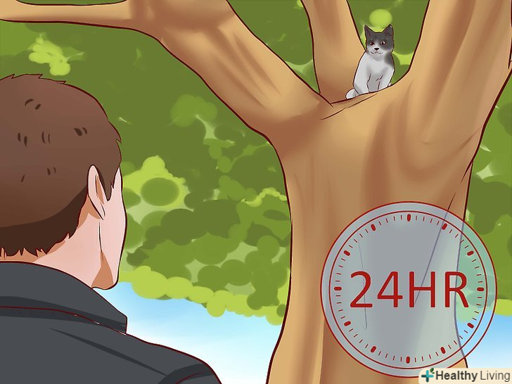 Зачекайте деякий час, продовжуючи спостерігати за кішкою, – можливо, вона спуститься з дерева сама. Дайте тварині можливість злізти з дерева самостійно, перш ніж робити подальші дії. Часто кішки, заспокоївшись і знайшовши відповідний шлях, самі спускаються з дерева. Кішці знадобиться деякий час, достатній простір для маневру і впевненість в тому, що люди або інші тварини не завадять їй.- Через деякий час тварина зголодніє, що додасть йому додатковий стимул.
