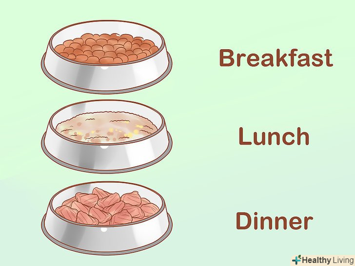 Врахуйте вік вихованця. з віком у кішок змінюються потреби в їжі. Можливо, поступово вам доведеться не тільки перейти на корм для більш дорослих кішок, але і почати годувати вихованця по-іншому.- У перші 4-6 тижнів життя кошенята отримують все необхідне їх організмам з молоком матері. Коли кошенят відлучать від матері, почніть годувати їх спеціальним кормом для кошенят. Давайте їжу 5-6 разів на день-кошенятам потрібно більш часте харчування маленькими порціями. [33]