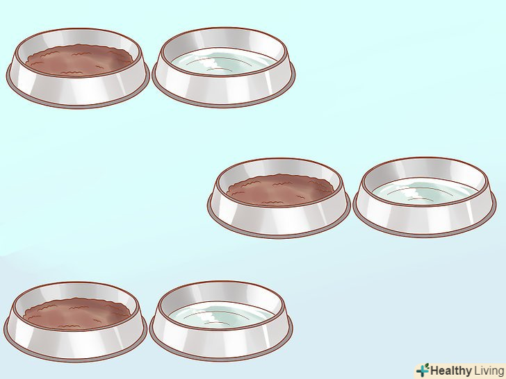 Кладіть їжу в окрему тарілку для кожної кішки і наливайте всім воду окремо. Кішки можуть захистити свою територію, особливо якщо мова йде про миску з їжею.- Краще купити прості миски з нержавіючої сталі - вони стійкі, і їх легко мити.