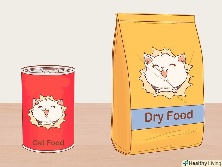 Вирішіть, який корм купувати - сухий або вологий. обидва типи мають певні переваги. Дуже часто тварині досить одного сухого корму і великої кількості чистої води. Якщо ви не впевнені, що потрібно вашому вихованцеві, порадьтеся з ветеринаром.- Якщо у кішки є проблеми з сечовивідної системою, діабет або захворювання нирок, волога в консервованому кормі допоможе підтримувати водний баланс організму. Вологий корм може на 78% відсотків складатися з рідини. [4]