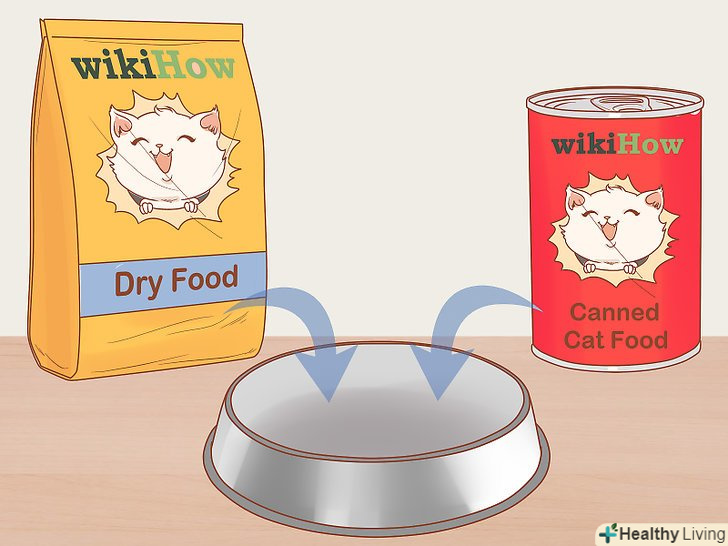 Спробуйте поєднувати сухий і вологий корм. це дозволить кішці отримувати більше вологи з їжею. [7] крім того, якщо кішка вибаглива в їжі, їй сподобається різноманітність. [8]- Якщо вирішите давати кішці обидва типи корму, стежте за тим, щоб не перегодувати тварину. Порції повинні містити потрібну кількість калорій.
