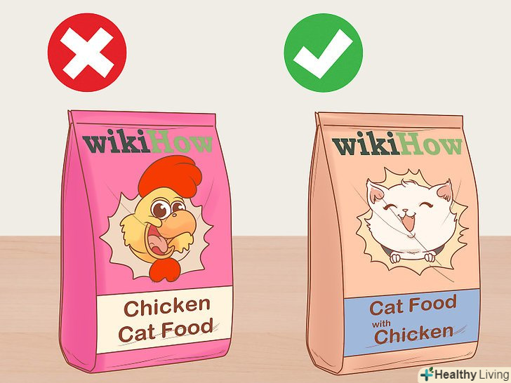 Навчіться правильно читати етикетки. зрозуміти, що міститься в кормі, може бути не так вже й просто. Важливо звертати увагу на наступне: [11]- Якщо в назві корму присутній слово " курячий "до слів" корм для кішок", в складі корму повинно бути не менше 95% цього продукту. Наприклад, в" курячому кормі для кішок " має бути не менше 95% цього продукту.
