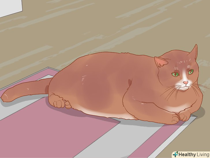 З'ясуйте, чи немає у кішки ожиріння. кожна п'ята кішка має зайву вагу. [15] зайва вага може привести до таких проблем зі здоров'ям, як діабет, захворювання суглобів і порушення кровообігу. Можна зрозуміти, чи є у кішки ожиріння, якщо доторкнутися до її живота. Якщо ви не можете намацати ребра у верхній частині живота і з боків, у кішки може бути зайва вага. [16]- Ветеринар допоможе вам оцінити вагу тварини.