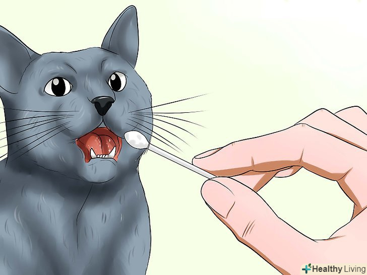 Візьміть зразок. Процедура взяття зразка у кішки досить проста. Набір для проведення тестів містить два пензлика. Приставте одну пензлик до щоки кішки на п'ять секунд. Витягніть пензлик з рота і потримайте на повітрі протягом 15 секунд, поки вона не висохне. Поверніть її в упаковку. Те ж саме повторіть і з іншого щокою.