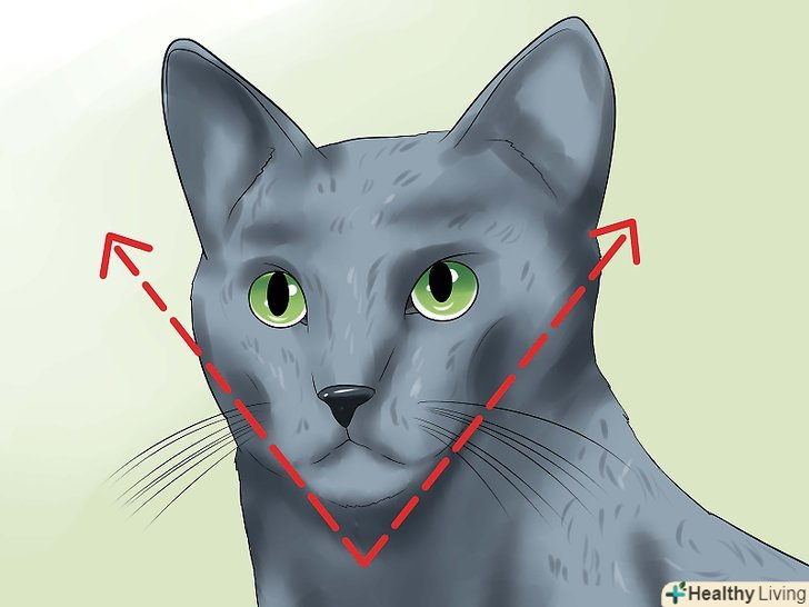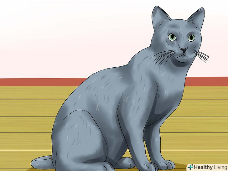 Вивчіть зовнішні риси кішки. російська блакитна кішки мають витягнутий корпус, вони стрункі і граціозні. У них довга витончена шия, але густа коротка шерсть може замаскувати цей факт, і зробити візуально її коротше, ніж є насправді.- У них худорляве тіло з тонкими кістками і, як правило, яскраво вираженими м'язами. [3]