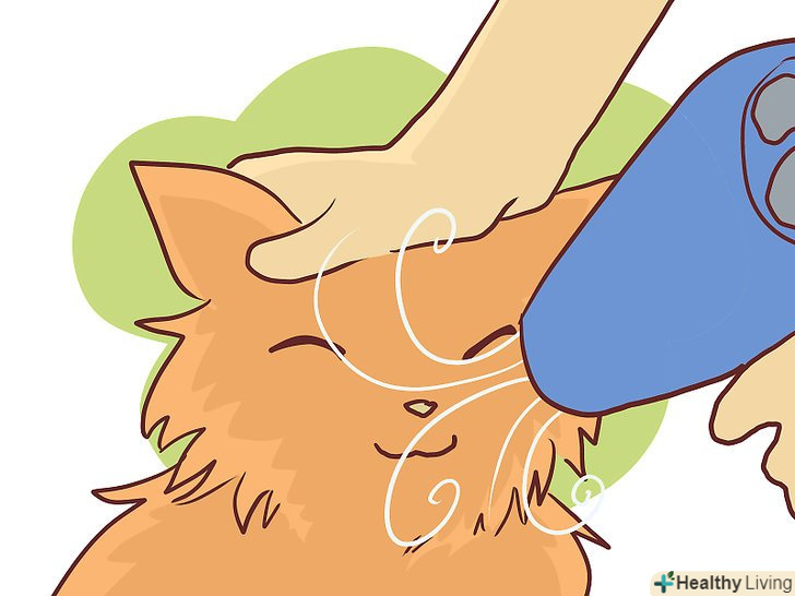 Використовуйте фен, щоб прискорити сушіння вашої кішки, коли ви поспішаєте. якщо ви вирішили користуватися феном, встановіть його низьку швидкість повітря і низький рівень тепла. Якщо повітря піде занадто сильно, ваша кішка, швидше за все, втече, і висока температура повітря необережно може обпалити ніжну шкіру вашої кішки. Тримайте фен не менше ніж на 30 см від кішки, одночасно сушіть невеликі ділянки шерсті.- Для додаткового обсягу для виставкових котів, розчісуйте шерсть в одну і іншу сторони, щоб розпушити її. Продовжуйте в тому ж дусі, поки шерсть не висохне, як ви хочете.
