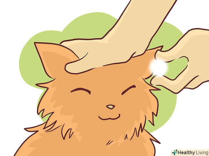 Намильте шампунь на шерсть вашої кішки. налийте невелику кількість шампуню на долоню. Пальцями іншої руки рівномірно наносите по всьому тілу кішки шампунь, з метою застосування невеликої кількості. Коли закінчився в долоні шампунь, пальцями масажуйте мокру шерсть, роблячи піну.- Не забудьте обійти області шиї, горла і грудку вашої кішки, але уникайте попадання шампуні в вуха або очі.