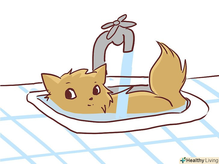 Дозвольте вашій кішці освоїтися у ванній, перед тим як почнете купання. дозвольте їй зручніше влаштуватися, звикнути до теплої води з лап до живота. Можливо, вам доведеться обережно утримувати її, притримуючи за плечі, щоб зупинити її стрибки прямо з ванної.