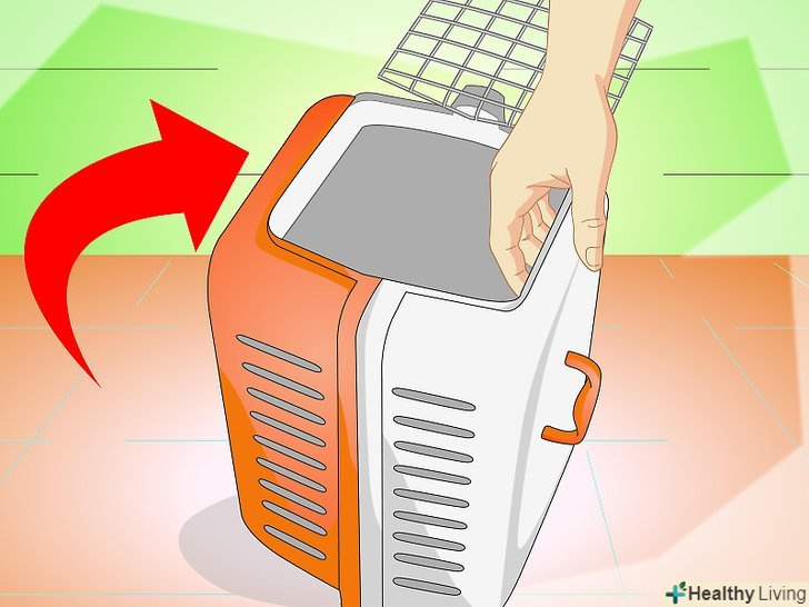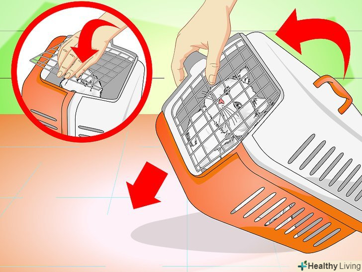 Розташуйте перенесення. жорсткі перенесення з дверцятами збоку або зверху відмінно підходять для навчання даної дії. [26] якщо переноска відкривається збоку, то розташуйте кошик вертикально отвором вгору. [27] так вам буде легко і безпечно помістити кішку всередину.- Спробуйте поставити перенесення до стіни, щоб вона не впала при спробах помістити кішку всередину.