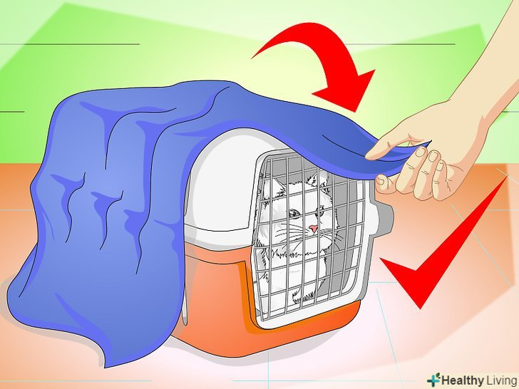 Накрийте перенесення рушником або наволочкою. накрийте кошик наволочкою або рушником, щоб кішка відчула затишок і безпеку. [35] це допоможе їй розслабитися і уникнути дискомфорту. Накривайте кошик під час поїздок, щоб кішка не помітила, що автомобіль рухається, а переноска залишається нерухомою на місці.