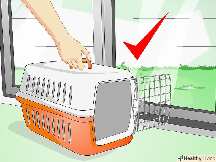 Розташуйте кошик в улюбленому місці вихованця. навіть при необмеженому доступі вихованець може відмовлятися заходити в переноску, якщо розташувати кошик в невідповідному місці. Поставте перенесення в одному з улюблених місць кішки (наприклад, біля вікна з сонячної сторони кімнати). [9]