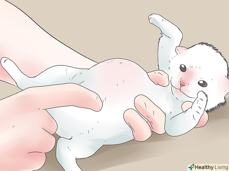 Після годування допоможіть кошеняті зробити відрижку. після того, як ваш вихованець поїсть, допоможіть йому відригнути зайве повітря. Переверніть кошеня на спину і починайте акуратно гладити його живіт. Робіть цей легкий масаж 5-10 хвилин або до тих пір, поки кошеня не випустить потрапив в шлунок повітря, тобто поки не зробить відрижку.- Продовжуйте робити це до тих пір, поки кошеня не підросте і не навчиться випускати повітря самостійно під час гри.