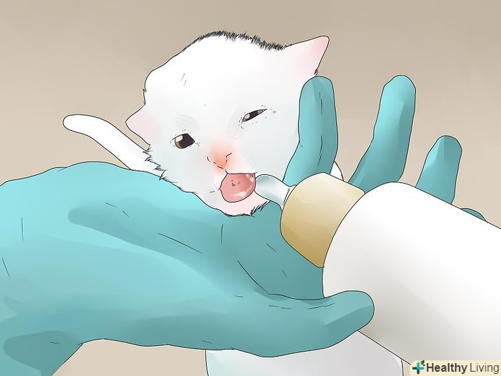 Давайте кошеняті буквально по кілька крапель молока. спробуйте дати кошеняті кілька крапельок суміші за допомогою шприца або піпетки. Якщо ви використовуєте пляшечку, вставте соску в рот кошеня і злегка натисніть на неї, з тим щоб молоко почало витікати в рот.- Переконайтеся в тому, що молоко не випливає з соски занадто швидко, інакше воно може почати виливатися з ніздрів вашого улюбленця.