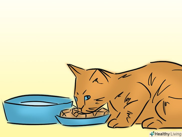 Збільшити твердість їжі. коли кошеняті від 8 до 10 тижнів, зробіть кашу більш твердою. Зрештою, перестаньте давати кошеняті кашу, а замість цього давайте йому змочений корм. При перемиканні кошеня на іншу їжу, дайте йому окрему миску з водою.