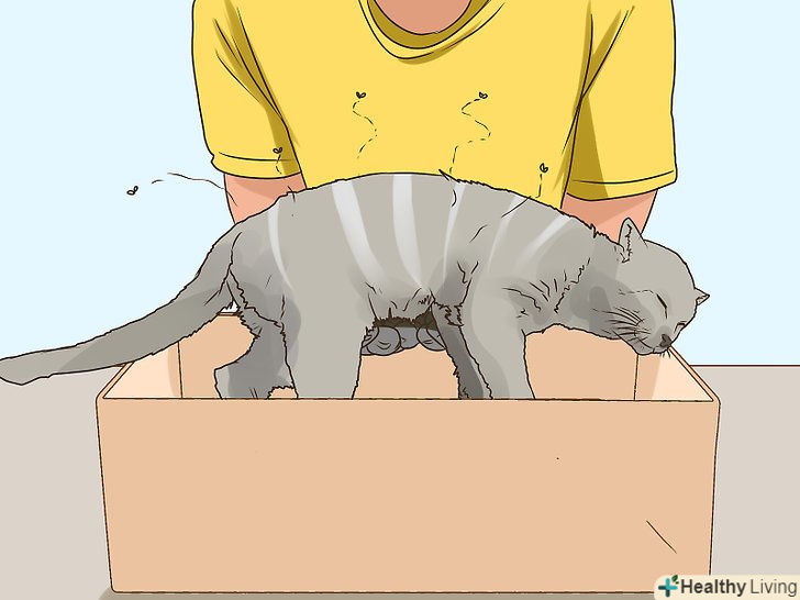 Помістіть кішку в вибраний контейнер. одягніть рукавички, коли ви будете брати в руки тіло кішки. Можна покласти в контейнер улюблені предмети вашого вихованця. Наприклад, можна обернути кішку в її улюблене ковдру. Ви також можете покласти в контейнер улюблену іграшку своєї кішки або інші предмети, які вона любила, коли була жива. [8]- Обов'язково обв'яжіть закриту коробку мотузкою, після того, як ви покладете в неї кішку.