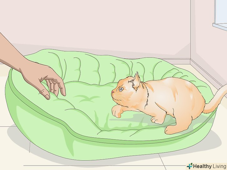 Підготуйте спальне місце. Коту необхідно місце для сну, щоб в новому будинку він відчував себе в безпеці. Існують як прості лежаки, так і поліпшені варіанти з підігрівом, що працює від розетки. [4]- Не можна гарантувати, що коту відразу ж сподобається його нове ліжечко. Часто тварина вибирає подушку або місце на килимі поруч з купленим лежаком. Не турбуйтеся. Іноді достатньо кількох іграшок, котячої м'ятою або теплих променів сонця з найближчого вікна, щоб заманити кота на лежак. [5]