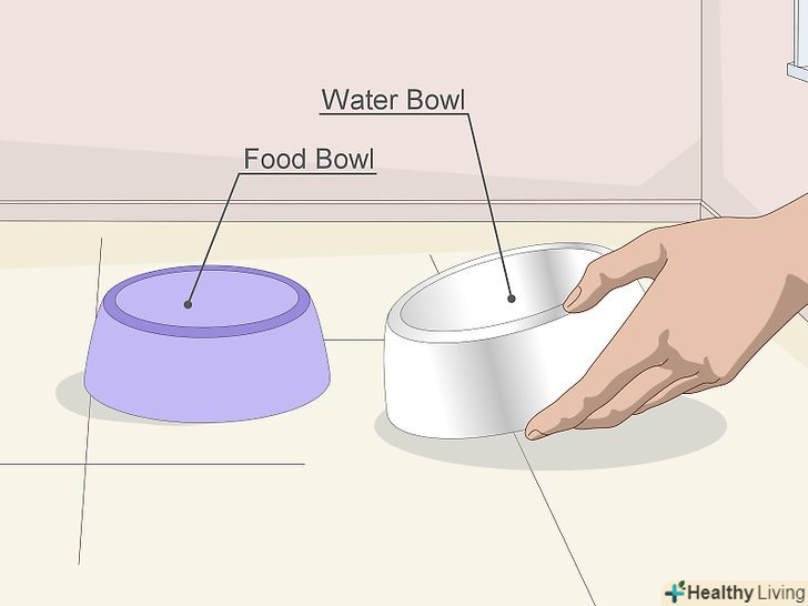 Купуйте миски для їжі та води. Коту потрібні різні ємності для їжі і води. Вибирайте ємності з нержавіючої сталі, кераміки або скла, так як ці матеріали простіше мити. [7]- Необов'язково купувати спеціальні миски для тварин. Можна використовувати такі ємності, які вже є на кухні. При цьому слід знати, що миски для тварин більш важкі. Вони мають обтяжене дно, щоб ємність було складніше перевернути.