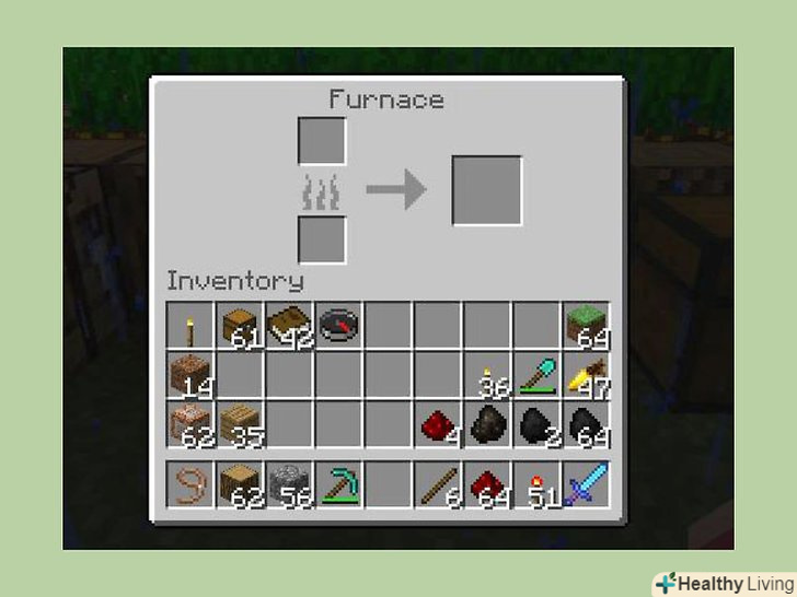 Додайте паливо.піч не запрацює, поки ви не додасте паливо для її розігріву. Його необхідно помістити в другу клітинку. В якості палива можна використовувати практично будь-який горючий предмет, але ось вам найбільш поширені варіанти:- Вугілля є найбільш ефективним і доступним вибором.