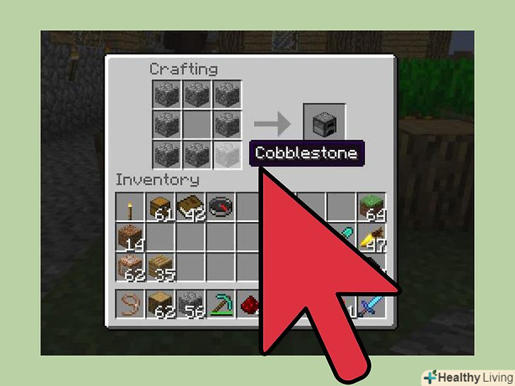 Помістіть у верстак вісім булижників.центральну клітинку залиште порожньою, але заповніть решту вісім. Бруківки будуть перетворені в піч.