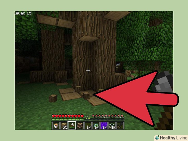 Розбийте Дерева для видобутку деревини.затисніть кнопку удару на дереві, щоб розбити його на деревину.
