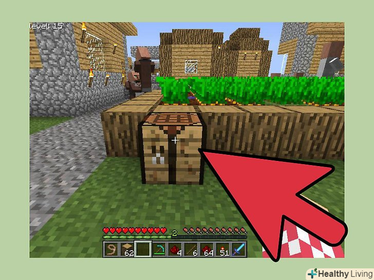 Встановіть верстак на землю.перемістіть верстак в один зі своїх швидких слотів в нижній частині екрана. Клацніть лівою кнопкою миші, щоб взяти верстак в руки, а потім правою кнопкою встановіть його на землі. Надалі більшу частину створення предметів ви будете проводити, клацаючи правою кнопкою миші по верстату. Таким чином, крафтова область збільшиться до сітки 3х3, замість сітки 2х2.- У версії pocket Edition потрібно натиснути на блок в швидкому слоті, а потім натиснути по землі, щоб його встановити.