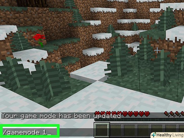 Відкрийте карту на виживання в творчому режимі.Одним з найпростіших способів пошуку сіл у вже існуючій грі є перехід на творчий режим, в якому можна літати і знаходити села. Процес переходу на інший режим залежить від версії гри:- Версія для комп'ютерів – введіть у вікно чату/gamemode 1, щоб перейти в творчий режим. Для цього у вас повинні бути включені чіти.