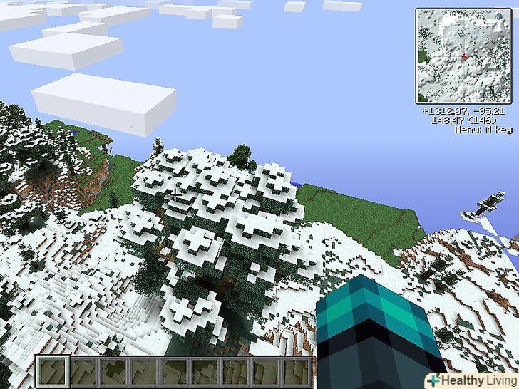 Знайдіть відповідні біоми.за допомогою польоту можна швидко переміщатися по світу. Скористайтеся цим, щоб знайти біоми, на яких можуть бути села: рівнини, Савана, пустеля і тайга (починаючи з версії 1.10).- Використовуйте цей метод в поєднанні з попередніми, щоб перевірити кілька локацій з програми пошукача. Це набагато швидше, ніж перевіряти кожне місце пішки.