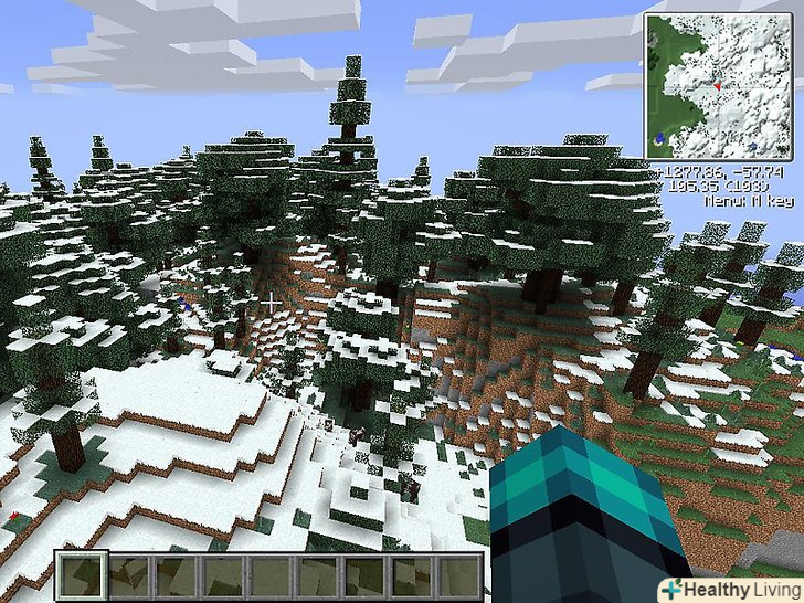 Почніть грати в світі з включеною опцією "Generate Structures" (згенерувати будови).- Так як команда / locate не працює, вам доведеться використовувати Сід 16w39a.